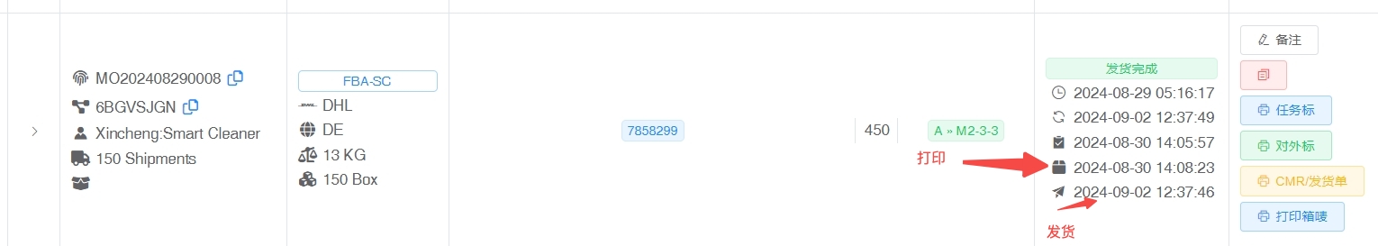 每个出库任务都会以「生成运单」、「打包完成(打印运单)」和「出库扫描」三个关键节点为操作节点,具体截图如下: